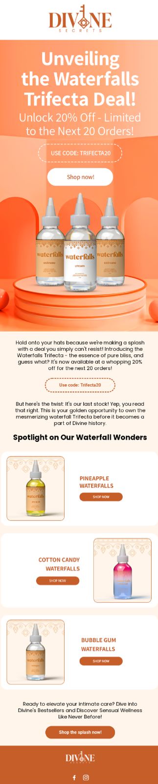 Before we partnered up with Divine Secrets they couldn’t generate any money from email marketing campaigns, unless they had a sale. This was killing one of the biggest leavers that email marketing pulls, highly profitable sales. Because of this we had to completely change the prescription that the list had for this brand. We knew buyers were just waiting for that bi-weekly or monthly 25% off sale. So things started slow, but over time though sharing brand building content we won them over. This allowed us to sell stock at full price and push hard with campaigns such as new products, back in stock, bestsellers, reviews and so much more! In this 6 month period over 28% of sales came from campaigns alone, not just emails!